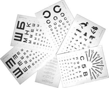 The main types of devices and tables for testing the quality of vision are: